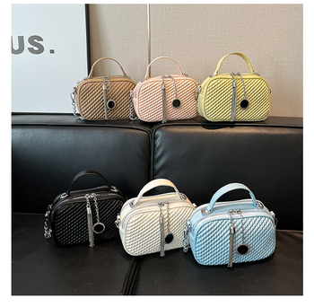 Bolso cuadrado pequeño 2025 nuevo bolso de hombro informal coreano bolso a rayas bolso cruzado de cadena versátil